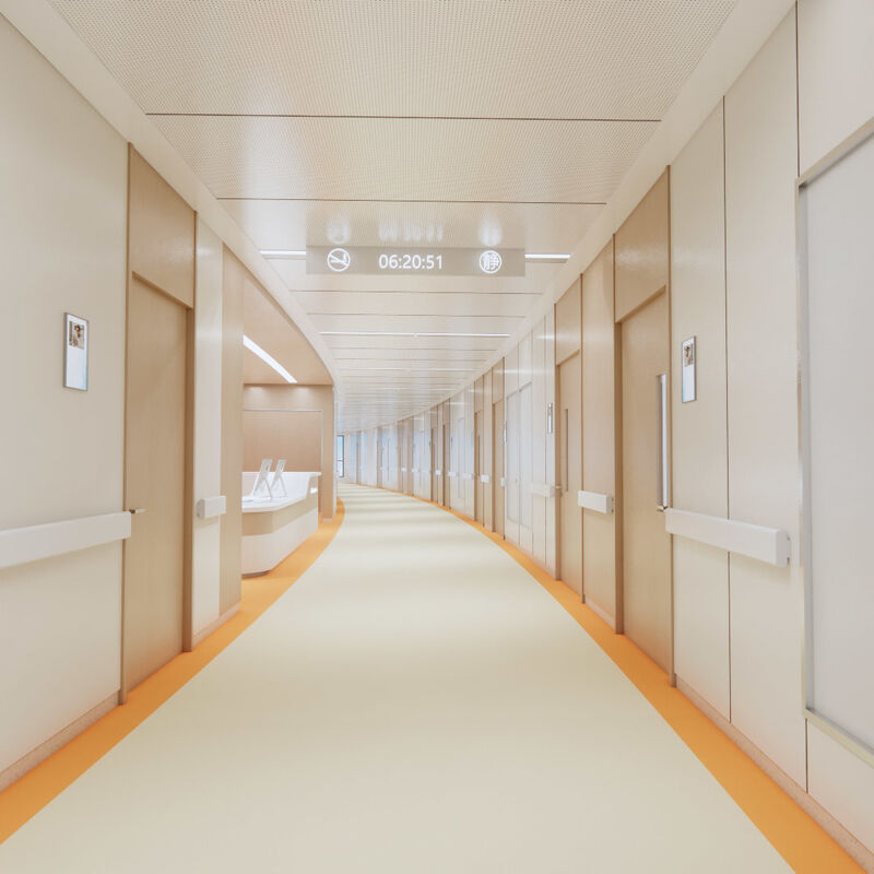 Relle  Heterogen Bodenbeläge zeichnen sich durch einzigartige Muster, Einfachheit, Komfort und hervorragende Leistung aus. Seine super starke Chemikalienbeständigkeit macht ihn zur ersten Wahl für Krankenhäuser.