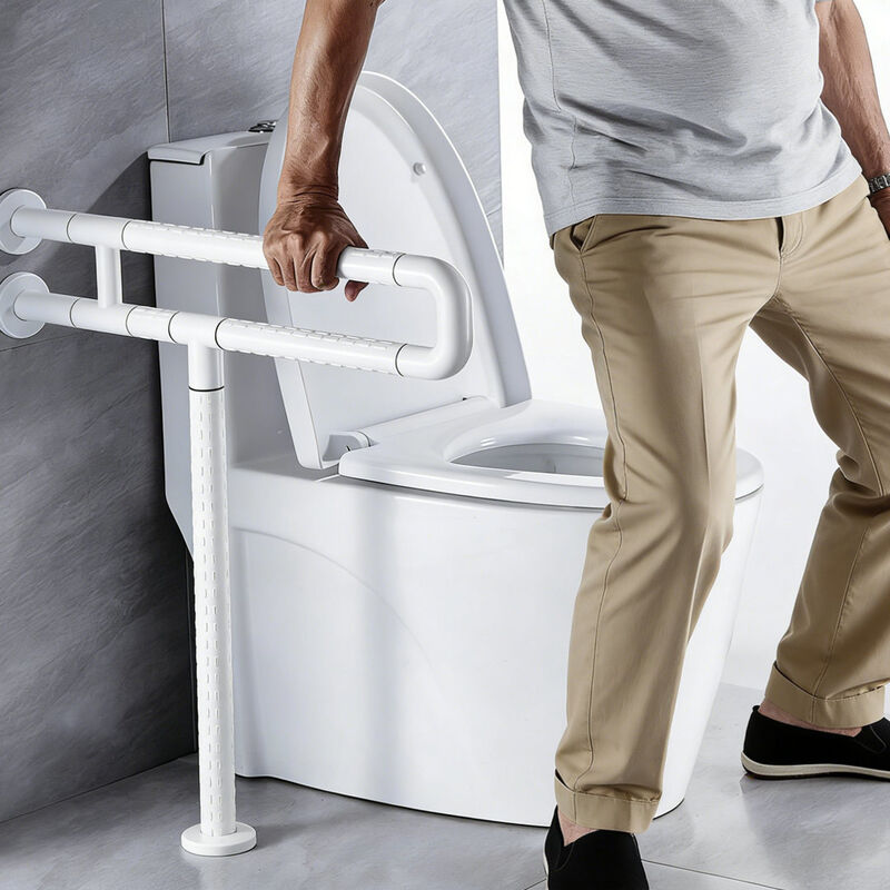 Der U-förmige Doppel-Toiletten-Haltegriff verfügt über eine Nylon-Außenschicht und einen hochwertigen Aluminiumlegierungskern mit rutschfester Textur, warmem Griff und antibakteriellen Eigenschaften, was ihn zu einer idealen sicheren Unterstützung für Zuhause, Krankenhaus, Pflegeheim und verschiedene öffentliche barrierefreie Badezimmer macht.