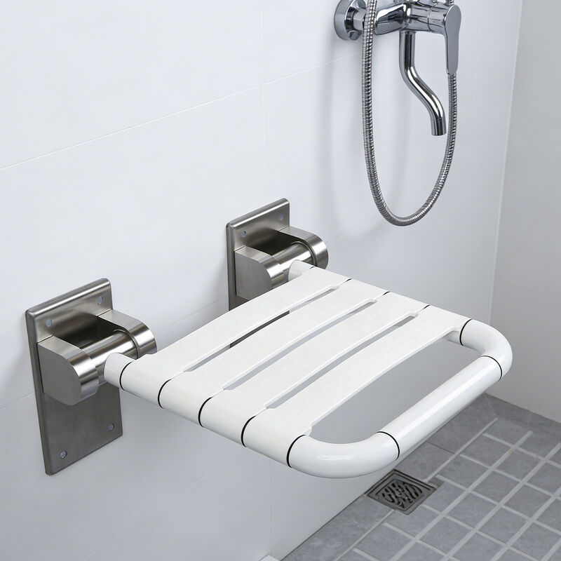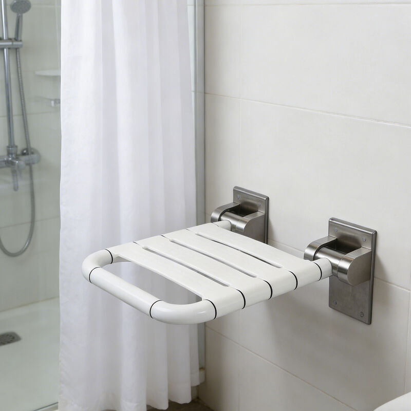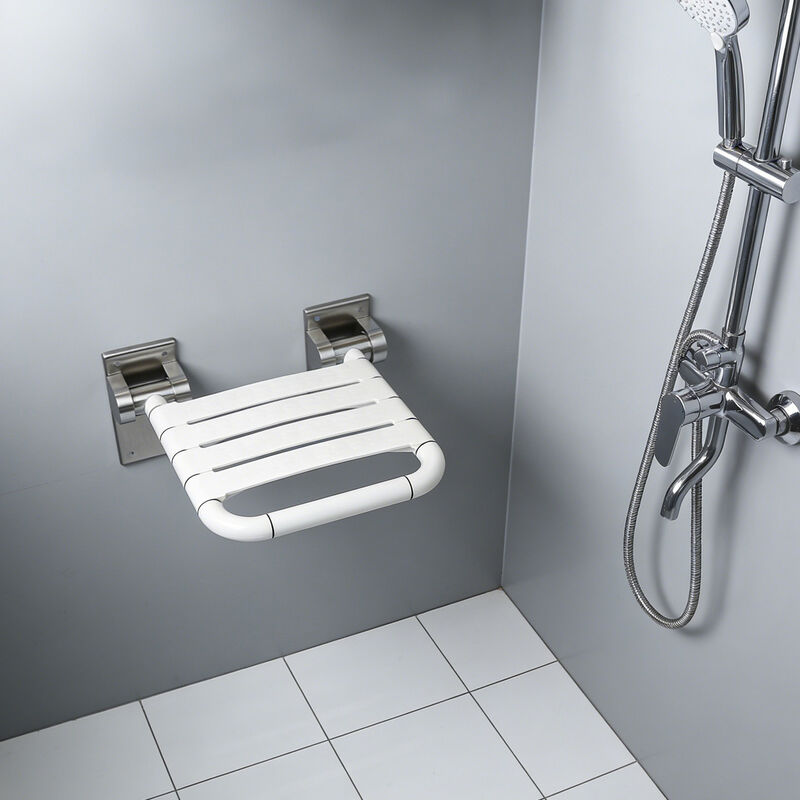 304 Edelstahlhalter, rutschfester ABS-Sitz, 90° Klappbarkeit spart Platz, für Stabilität an der Wand montiert.